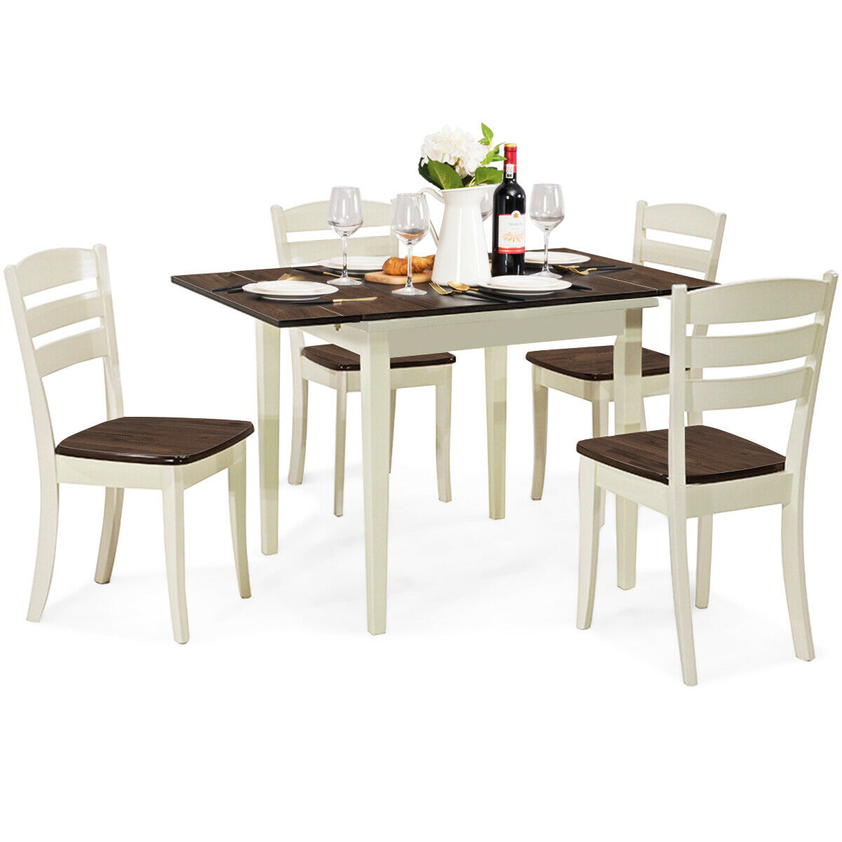 Costway 5pcs dining set solid wood compact kitchen table & 4 chairs modern. Give your entertaining ensemble an easy update with this dining set, ready to host festive family feasts and upscale dinner parties alike. And less time searching for dining tables and chairs means more time for sharing good food and laughter with family and friends. Complete dining room sets from rooms to go. 4.8 out of 5 stars 5.